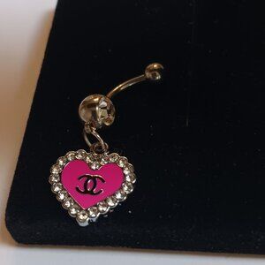 Beautiful Fuchsia pink heart embellished with crystals highlight this handcrafted belly ring. Has clear gem 14G belly ring.