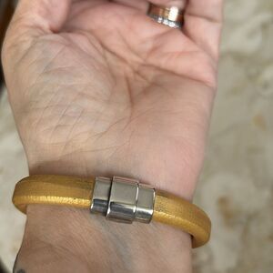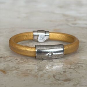 New old stock, handcrafted leather cuff style bracelet. Magnetic closure.