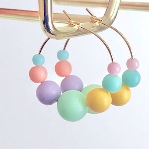 New Handmade Beaded Hoop Earrings Sorbet Pastel Spring Colourful Cute Fun Gifts