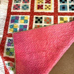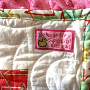 Made from cotton material and pink soft Minky fabric as backing