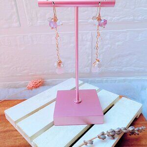 New Handmade Rose Quartz with Mini Gemstones Cluster Long Dangle Earrings