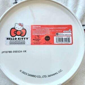 New Jazwares ceramic Hello Kitty Pet Bowl has repeating pattern of Hello Kitty's face in red and pink bows (can be used for other things besides for your furbaby). Nonslip, dishwasher and microwave save.