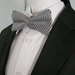 A BRAND NEW in Sleeve Men Boys Adjustable Houndstooth Black and White Bowtie.