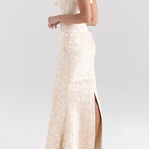 ivory metallic jacquard maxi skirt