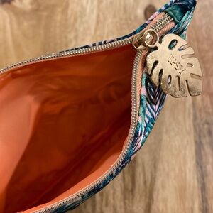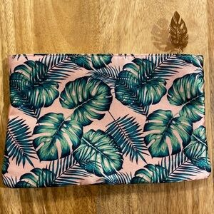 $9ea or 2/$15 never used 7x5” green pink palm leaves makeup bag travel bag