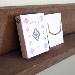New In Box Amelia Rue Gold Curved Bar Rainbow Rhinestone Necklace