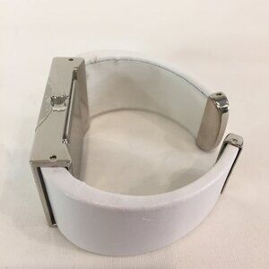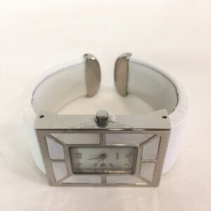 New In Box Avon Mother Of Pearl Bold White Hinged Cuff Bangle Style Analog Watch