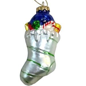 New In Box Holiday Collection Christmas Tree Glass Ornament Stocking Handpainted