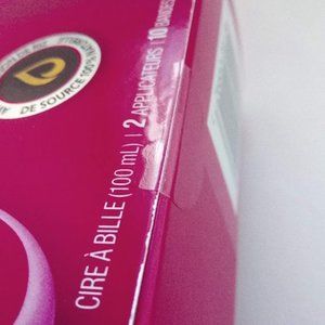 Colour: Box is pink (not sure of the color of the wax since the product is new and unopened)