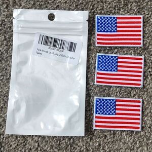 New In Package Pack Of 3 Small USA Flag Iron On Patches
