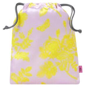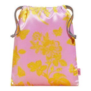 Large Ipsy Drawsring Bag pink with yellow floral design silky material. Great for travel