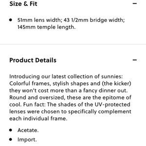 New with tags - J. Crew Carnival Round sunglasses in Tortoise. These chic round sunnies have the fun factor! The unique and stylish shape is made classic with a tortoise shell frame, it's sure to be a staple piece. * Acetate frames * UV Protection lenses * Comes with case and dust cloth Fit/size: * 51mm lens width * 43 1/2mm bridge width * 145mm temple length