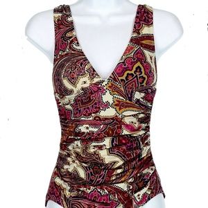 New JCrew 6 Cinnabar Paisley Ruched Boho Swimsuit Bathing Suit Medium Floral