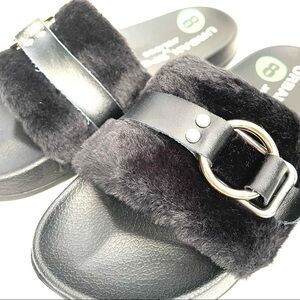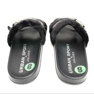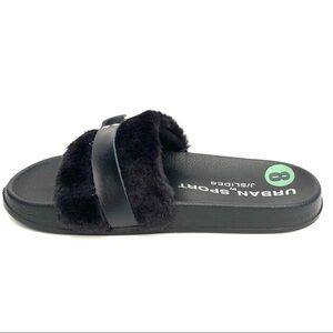 New J/Slides Black Faux Fur Slide Sandals US 8