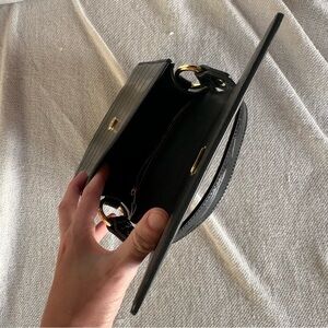 Sleek and stylish black satchel. Croc-texture design. Ideal for any outfit.
