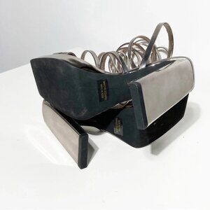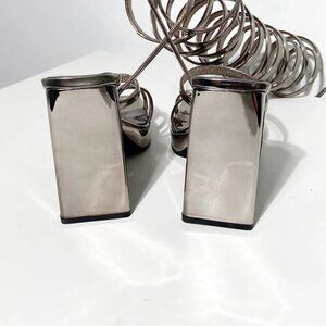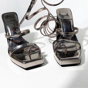 New Jeffrey Campbell silver pewter mirror finish coil slinky strappy heel sandal