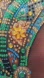 This exquisite art piece captures the elegance of a woman adorned with intricate beadwork. The painting features a harmonious blend of green and gold, adding a touch of sophistication to any room.