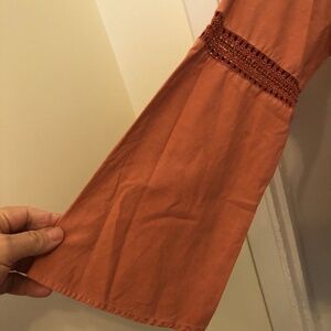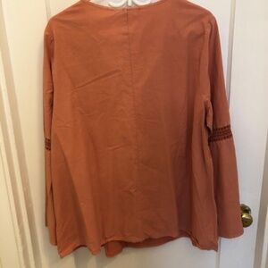 New Just Fab 2x burnt orange top, bell sleeves, tie front, lace inserts. Boho style top to wesr with long skirts, shorts, jeans and sandals. Great for that music festival you are headed off to this summer.
