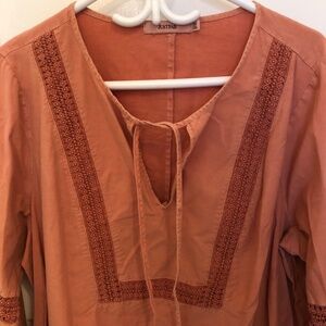 New Justfab 2x burnt orange top, bell sleeves, tie front, lace embellished