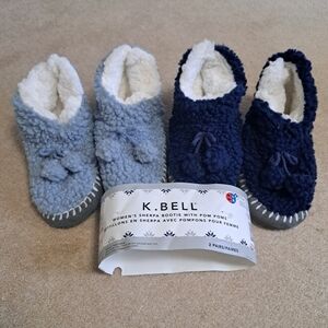 New! K. Bell Cozy Sherpa Booties Women's Slippers Blue Size M/L 7 - 8.5