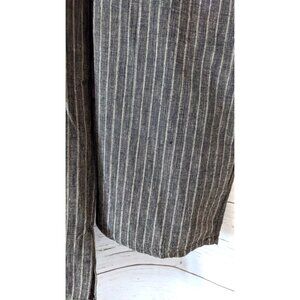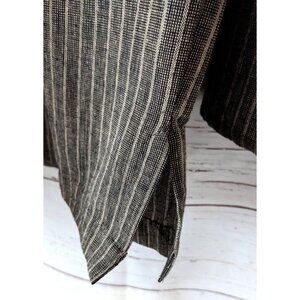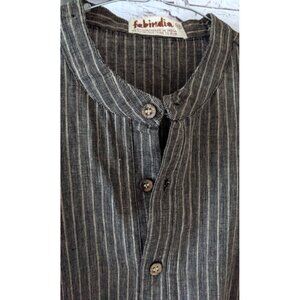 New Kurta Shirt Men 1/3 Button Up Brown 100% Cotton Striped Cuffless Long Sleeve