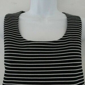 New LAFAYETTE Black White Stripe Round Neck Sleeveless Knit Dress Medium, Large