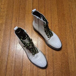 New L'Intervalle | Gene white croco leather boots
