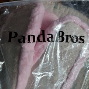 Panda Bros slippers/socks. Women's size Medium. (Shoe size 5-7.5) Cozy warm. Fuzzy lined. Non-slip grip. Pretty in pink with a sweet piggy face.
