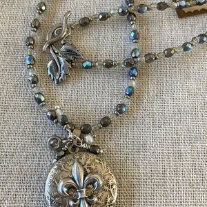 ✨ New Laura Hansen Design fleur de lys beaded locket necklace