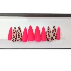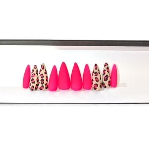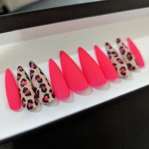 New Leopard Print Stiletto Nails Handpainted Custom Made Press Ons Neon Nails