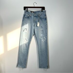 New Levis Premium 501 High Waist 100% Cotton Straight Leg Distressed Jeans 27