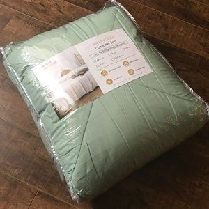 Brand New Light Green & Grey Reversible QUEEN 3 Piece Comforter Bedding Set