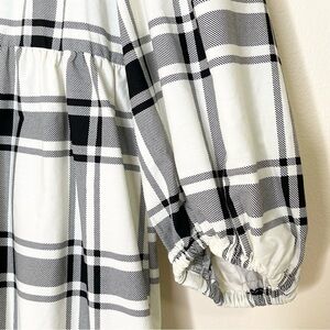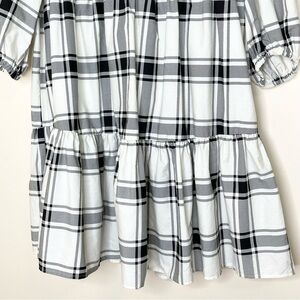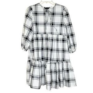 New Look Asos White and Black Plaid Tie Neck Tiered Dress US 4
