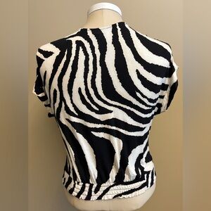 New Look Black White zebra print twist front Blouse Elegant Top women's size S