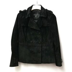 New Look Jacket Womens Size12 Vintage Edition Black Real Suede Front Button Up