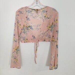 New Look Women's Bolero Cardigan Size 8 Sheer Pink Floral Tie Front Party Chic Bohemian Date Dinner Casual