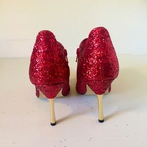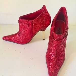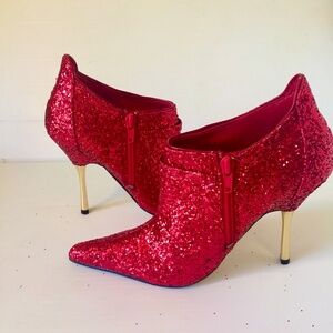 New Low Ankle Boots, Size 5.5, Red Glitter, Hollywood Heels, Heel 4" high