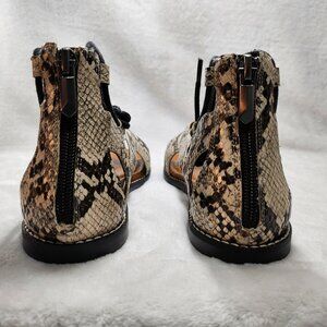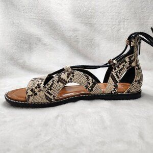 Gladiator style Sandals in a natural tan and brown Snakeskin print(Agatha) with laces. Excellent unworn condition in original packaging. Size 7M US/Can. PU.