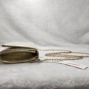 Kate & Alex Cuffaro Gold Clutch evening purse with removable chain strap. NWT. Excellent unused condition. 7.5 by 4 by 2 inches aprox.