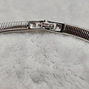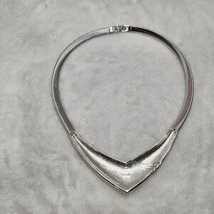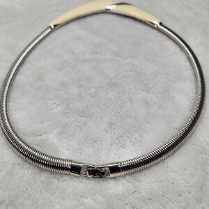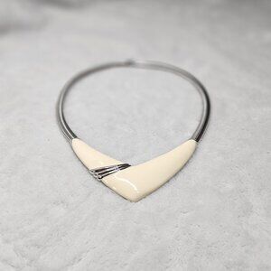 Retro Chic 1980's Vintage authentic Monet upscale costume jewellery necklace in plated silver toned finish with bone/ivory enamel inlay. Stamped with hallmark in two locations on jewellery. Excellent condition.
