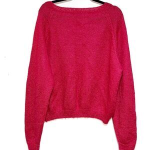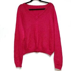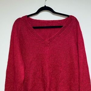 New Luxurious Handknit Alpaca V Neck Cranberry Color Sweater Womens Sz L/XL