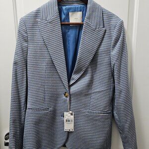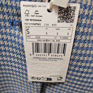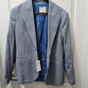 Mango blue and cream houndstooth blazer. Great as an outdoor blazer over a turtleneck or sweater or as an everyday fun piece. Perfect for jeans or dress pants. Business or business casual. New with tags.
