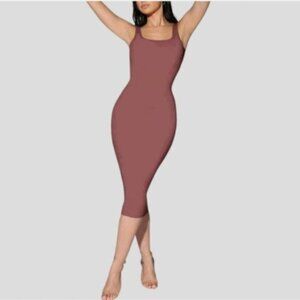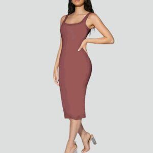 New Mauve Stretchy Square Neckline Sexy Midi Dress- Size M