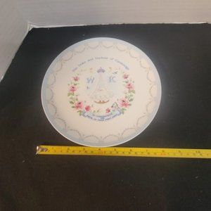 Celebrate the birth of the royal baby Prince George with this stunning commemorative plate from McIntosh. Featuring the Duke and Duchess of Cambridge, this collector plate and mug is a must-have for any fan of the royal family. Crafted with exquisite attention to detail, this Duchess brand collector plate is not only a beautiful decorative piece but also a valuable addition to any collection. Perfect for display in a cabinet or on a wall, this plate is a true representation of the joy and excitement that the arrival of a new royal baby brings. Don't miss your chance to own a piece of history with this limited edition McIntosh Royal Baby plate and mug in original boxes. Please note a name is written inside the plate box otherwise in excellent condition with no wear.