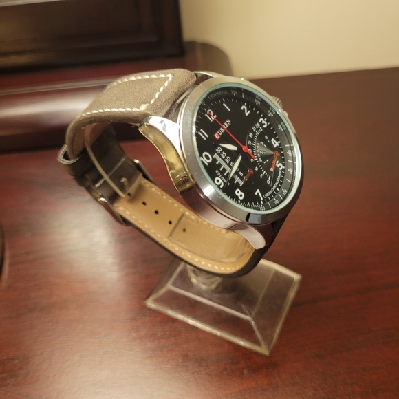 Stylish Curren chronograph watch with a black dial and brown leather strap. Perfect for any occasion.