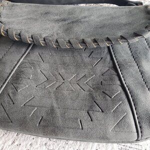New Mia & Luca Silver Grey suede leather Aztec woven purse NWT