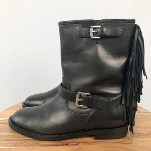 Michael Kors Collection Ingrid Fringe Leather Moto Boots - Size 37 / 7