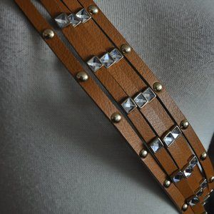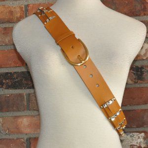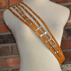 New Michael Kors Leather Multi Strand Studded Rhinestone Tan Hip Hugger Belt L