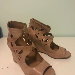 New Miz Mooz beige leather platform sandals. Cute cut out Size 8 Very comfortable
