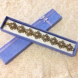 New Multi Pearl Links Floral Gold Tone Bracelet Women's Jewelry Gifts